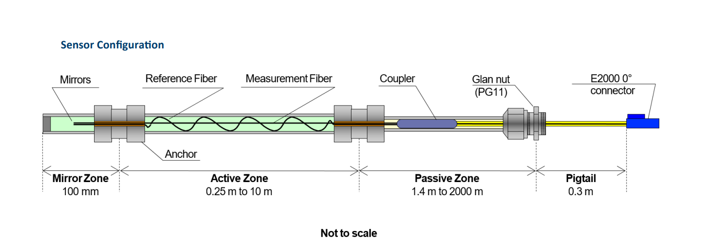 The SOFO deformation sensors are transducers that transform a distance variation into a change in the path unbalance between two optical fibers that can be measured with a SOFO VII Reading Unit.The sensor is composed of two main parts: active and passive. The active part contains the reference and the measurement fibers and measures te deformations between its two ends. The passive part is insensitive to deformations and is used to connect the sensor to the Reading Unit. The output is terminated with an E-2000 connector with a built in protective cover. The sensors can be quickly and easily surface mounted or directly embedded in concrete and mortars.